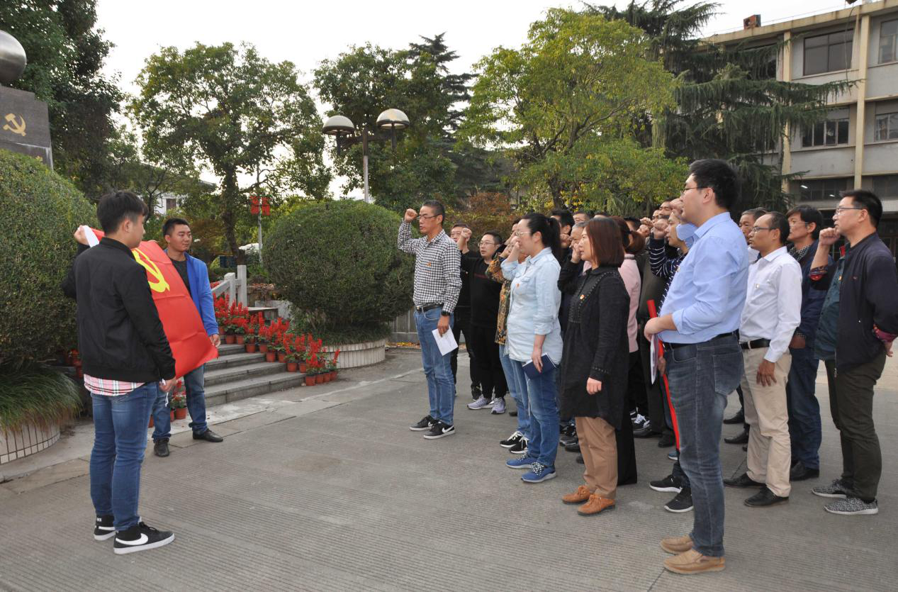 來到南通獨立支部紀念地碑前,在大生集團有限公司副董事長、總會計師漆穎斌的熱情接待下,紡織染公司全體黨員聆聽了黨辦潘宇關于獨立支部光榮歷史的講解,對其成立的過程,最初成員,以及偉大意義和作用都有了更為深刻地認識和理解。作為南通最早的黨組織,中共南通獨立支部的成立點燃了江海大地第一簇革命星火,掀開了南通革命史上嶄新的一頁。 瞻仰紀念碑,紡織染黨委書記、董事長李志宏帶領全體黨員干部莊嚴地舉起右手,在中國共產(chǎn)黨南通支部紀念碑前,面對火紅的黨旗,重溫入黨誓詞,緬懷革命先輩光榮歷史,深刻感受他們在革命歲月里,不忘初心,牢記使命,創(chuàng)獨立支部、干經(jīng)天偉業(yè)的壯志豪情;感受他們?yōu)橹袊嗣裰\幸福,為中華民族謀復興的艱苦卓越歷程。