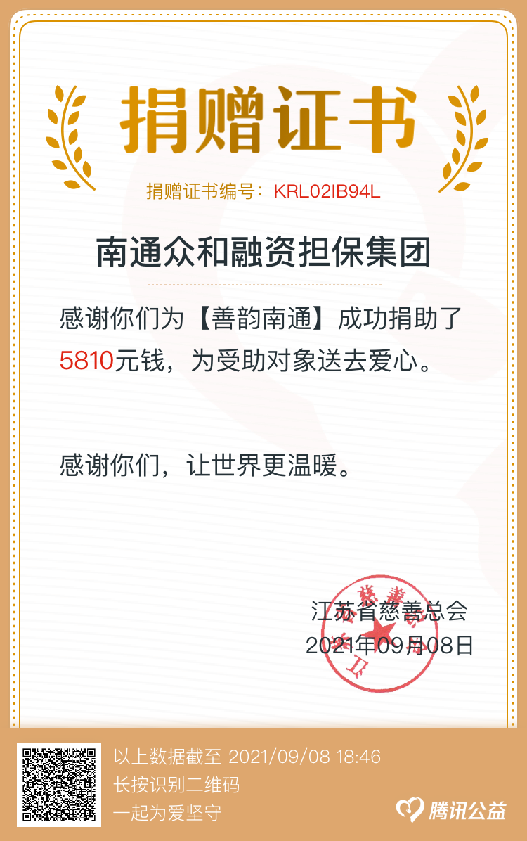 為進(jìn)一步弘揚中華民族扶貧濟(jì)困傳統(tǒng)美德,倡導(dǎo)“以人為本,樂于奉獻(xiàn)”的互助精神,眾和擔(dān)保積極發(fā)動發(fā)動、廣泛宣傳,第一時間組織全體干部職工開展“慈善一日捐”活動。公司領(lǐng)導(dǎo)班子成員率先垂范,帶頭捐款,全體干部職工踴躍參與,奉獻(xiàn)愛心參與度100%。9月8日,共籌得善款5810元,募集資金將統(tǒng)一交至南通市慈善總會,用于扶貧、慈善救助項目。