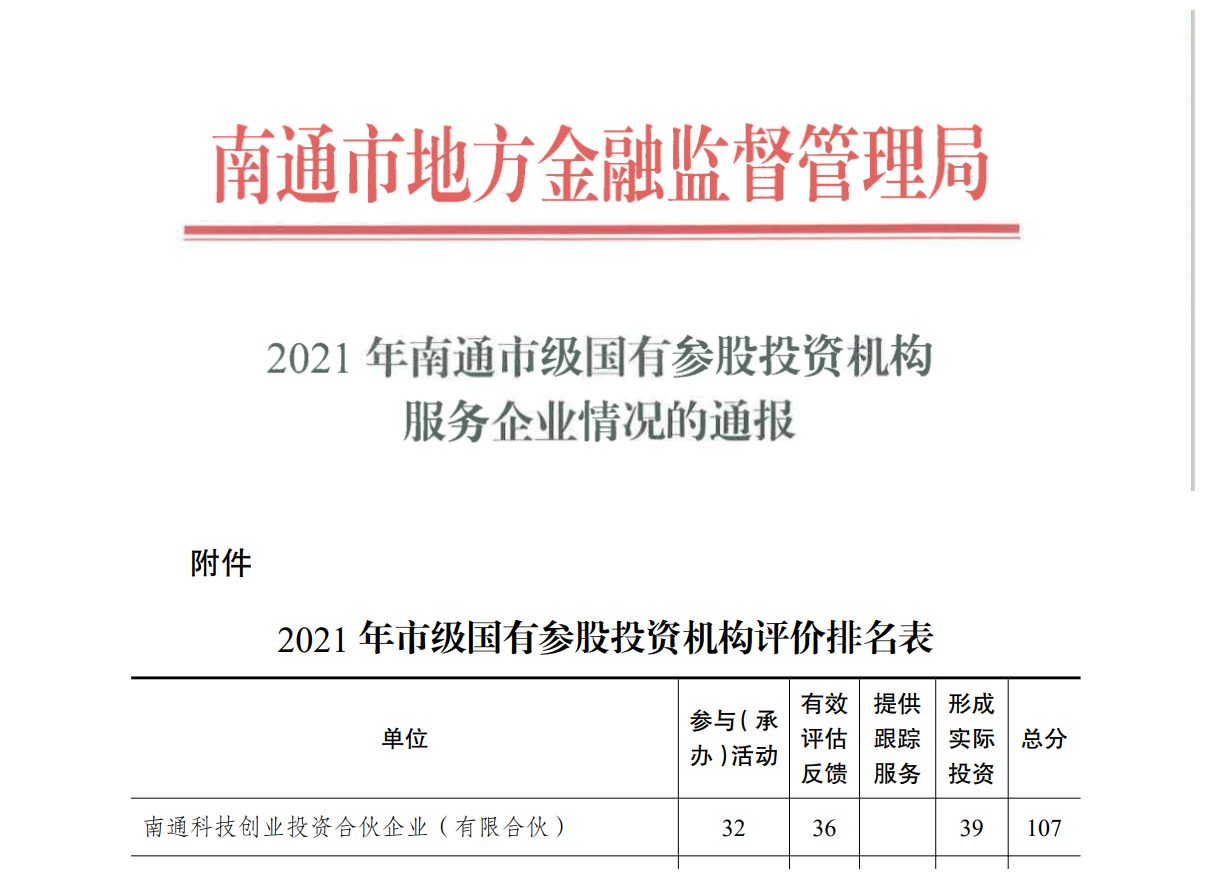科創(chuàng)管理公司2021年度市級國有參股投資機構(gòu)服務(wù)企業(yè)排名第一