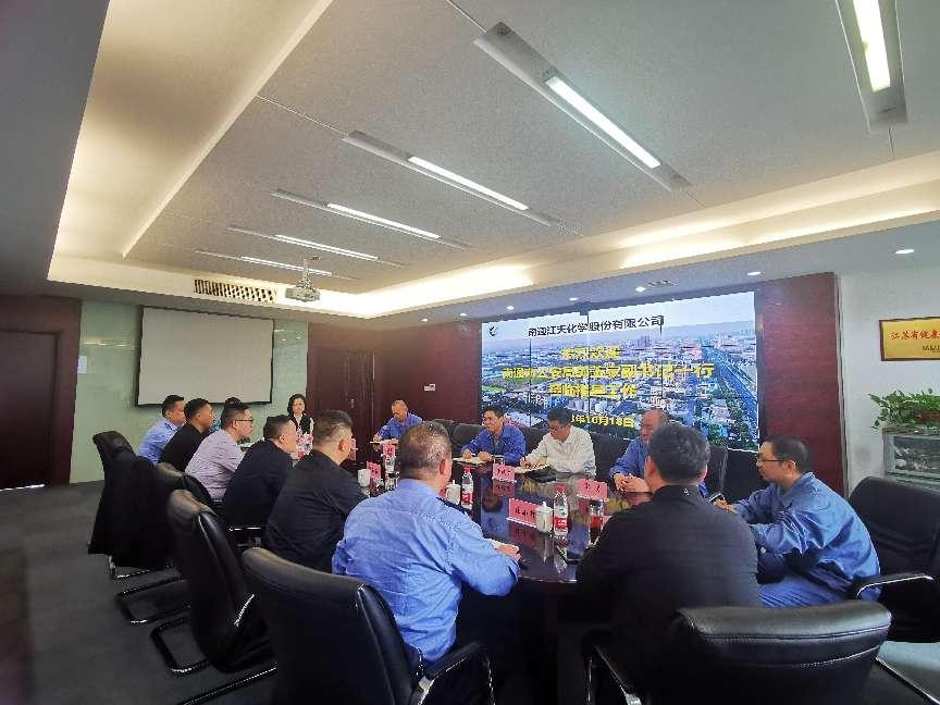 為全方位深度擰緊安全環(huán)保責(zé)任鏈條,進(jìn)一步提高企業(yè)環(huán)保本質(zhì)化治理能力和水平,10月18日上午,南通市公安局黨委副書記、副局長郭玉家一行來到南通江天化學(xué)股份有限公司開展工作走訪調(diào)研。江天化學(xué)黨支部書記、副總經(jīng)理張永鋒、黨支部副書記、副總經(jīng)理沙曉東、支部委員、副總經(jīng)理任建軍等陪同調(diào)研參觀。
