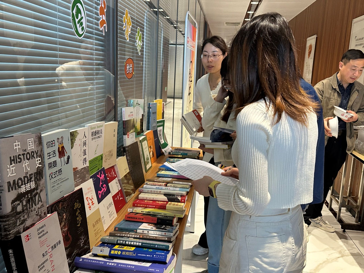 書香潤(rùn)智,雅行成習(xí)。為了讓員工們閑置的圖書流動(dòng)起來,提高圖書的使用價(jià)值,營造良好的讀書氛圍,打造書香精華,第29屆世界讀書日之際,精華制藥直屬團(tuán)支部根據(jù)集團(tuán)黨委部署,開展了“好書漂流、愛心無限-跳蚤書市”活動(dòng)。 為了保證此次活動(dòng)的順利開展,集團(tuán)直屬黨支部發(fā)出倡議,動(dòng)員員工將家中閑置的書籍捐贈(zèng),由集團(tuán)直屬團(tuán)支部負(fù)責(zé)收集售賣。 4月24日,直屬團(tuán)支部將“跳蚤書市”設(shè)在了人流量較大的公司食堂,支委們使出渾身解數(shù),書籍介紹、宣傳售賣、講價(jià)議價(jià)……全然一副新店開張的畫面,熱情洋溢。來往的員工們?nèi)祟^攢動(dòng),挑選購買,收獲頗豐。公司領(lǐng)導(dǎo)們也積極加入“購書”隊(duì)伍,讓“跳蚤書市”的氣氛更加活躍。 此次“跳蚤書市”是集團(tuán)第三屆“菁閱”讀書月系列活動(dòng)之一,近年來公司致力打造良好學(xué)習(xí)氛圍,持續(xù)激發(fā)員工們的閱讀熱情,不斷為打造精華“百年老店”蓄力。據(jù)統(tǒng)計(jì),僅當(dāng)日售賣書籍就已超捐贈(zèng)書籍的半數(shù),后續(xù)團(tuán)支部將集合所有售書款用于公益事業(yè)。